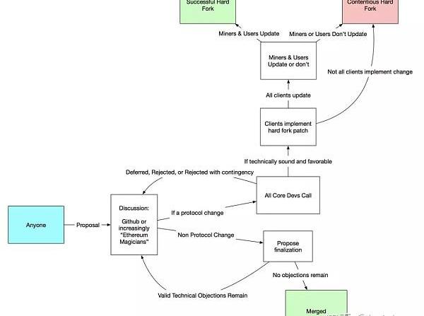 如果客戶端開發者沒有就發布什么功能或何時發布達成一致,那么他們中的一些人可能會開發、宣布并推出不同的功能集。我們之前在ETH/ETC的分叉中就看到了這種情況,并不是所有的客戶端開發者都同意如何進行,所以我們最終得到了兩條不同的鏈,由不同的群體來維護。