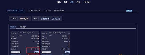 備注:?預言押金和ITF獎勵必須得最新保險產品結束之后才能領取