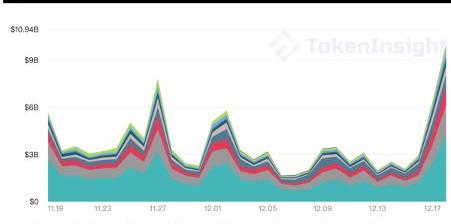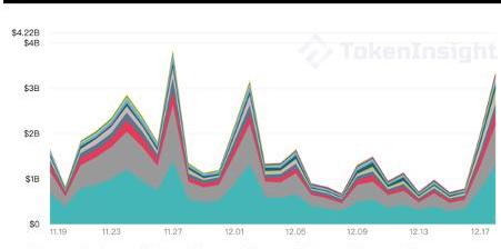 比特幣衍生品近90天資金費率,截至12月18日,來源:tokeninsight.com?與上周相比,伴隨著高增長比特幣資金費率由負轉正,特別是反向合約。這暗示著更多的投資者對未來市場的預期是樂觀的。