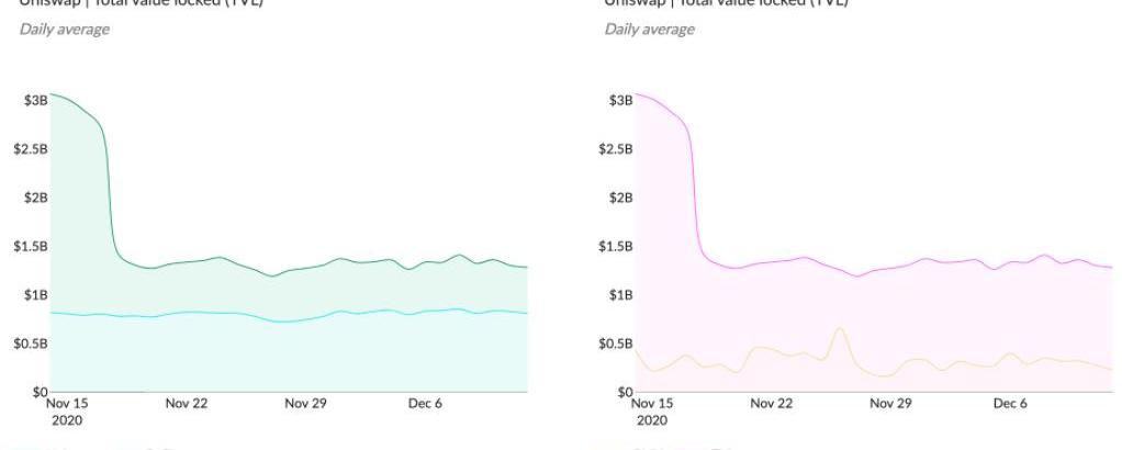 注:總鎖倉量(TVL)是衡量一個DeFi項目使用規模時最重要的指標,通過計算所有鎖定在該項目智能合約中的ETH及各類ERC-20代幣的總價值(美元)之和而得到。[2020/10/23]