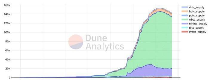 比特幣錨定幣是發行在非比特幣網絡上的價格錨定于原生比特幣的一類特殊代幣,WBTC是由Kyber、RenProtocol和BitGo聯合發行的BTC,與真實的比特幣1:1錨定,目前WBTC代幣發行量為115,631枚。