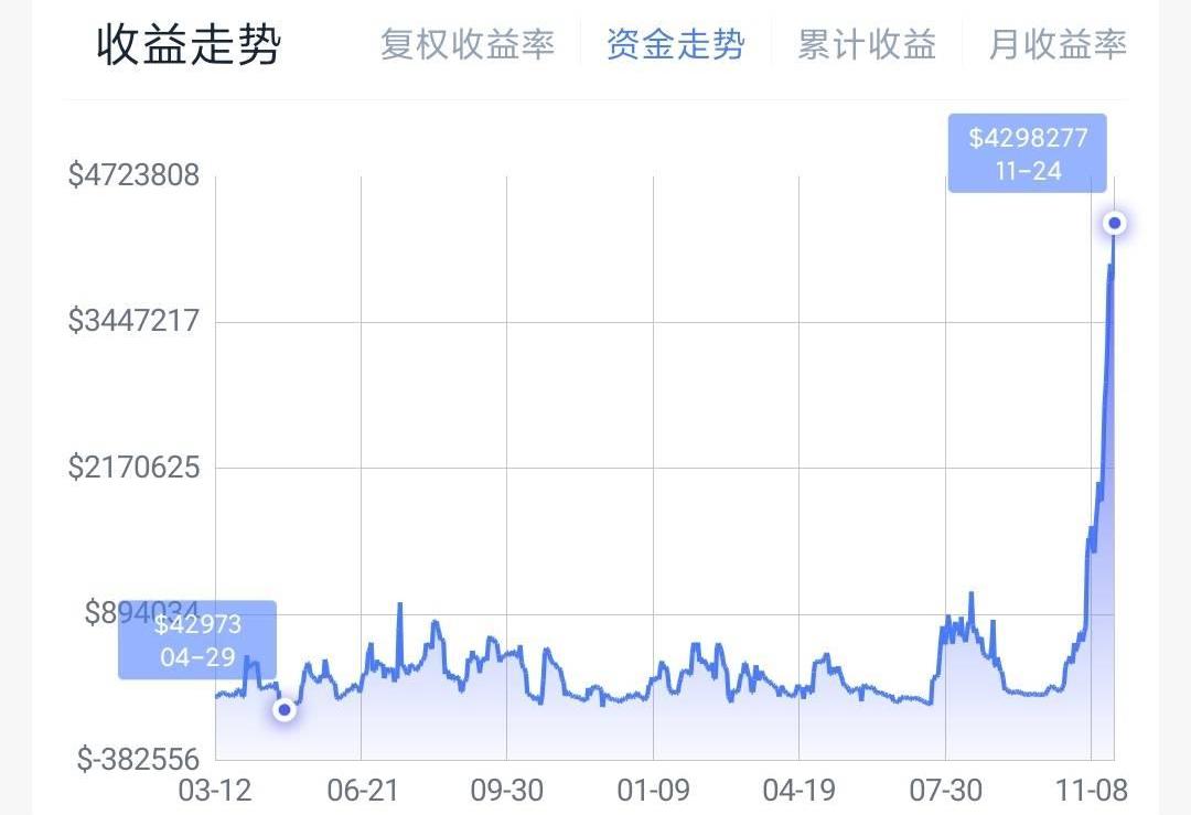 他在幣Coin的實盤數據顯示,肥宅賬戶總資產為4303131美元,約合2700萬人民幣。其累計收益率為3316.69%。月收益率482.81%。而3月12日以來,其賬戶累計收益為5841895美元,約合3740萬人民幣。
