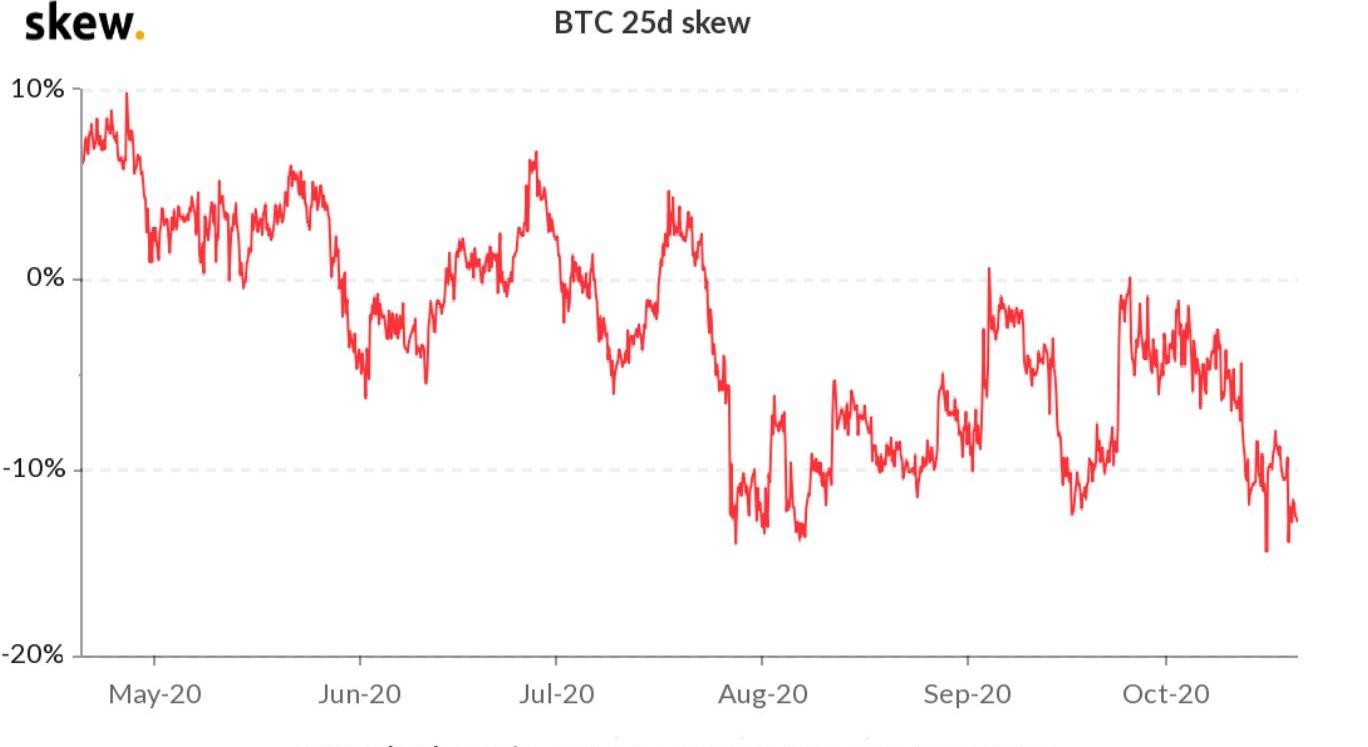 請注意,skew指標已接近6個月來的最低水平,顯示出交易員的樂觀情緒。這種情況與10月12日相同,當時BTC在4天內上漲了10%。盡管沒有什么可以阻止skew指標長時間保持在當前水平,但在BTC歷史上是不太可能的。