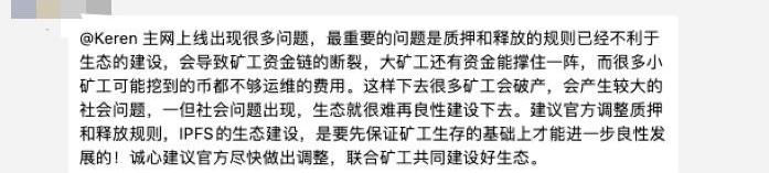 1.在Filecoin中國官方群里,可以看到礦工向官方提出了經濟模型的問題。