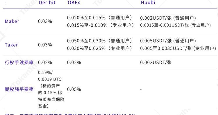 為Huobi的交易費用也是一個亮點,Huobi選取的方式是按單張合約收取固定價格的手續費用,一方面,由于單張期權的手續費固定,在交易權利金較高的期權合約時,手續費會有不小的優勢。另外每筆交易的手續費有上限,不超過支付或收取的權利金的12.5%。看漲期權交割手續費為對應的幣種,采用計價幣種USDT估算,并用交割價折算為對應幣種數量,從交割收益中扣除,若投資者的交割收益為負,則不收取。相對于其他交易所,Huobi的虛值期權和平值期權到期自動失效,無需行權交割手續費,只收取實值期權買方交割手續費,而賣方則無需支付行權交割手續費。