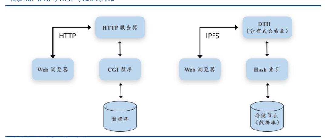簡單的說,基于IPFS協議存儲的文件是打散成許多可驗證的碎片文件,分布在網絡中,訪問者通過內容編碼找到這些文件的位置后進行下載,由于是分散存儲,不必須要求所有節點服務器都必須在線,以此IPFS希望達到創建持久且分布式存儲和共享文件的網絡傳輸協議的目標。而HTTP為代表傳統的中心化存儲差別十分明顯——HTTP的文件是中心化的方式存儲,通過文件的域名進行訪問,且域名文件服務器需要保持在線,否則將無法訪問。