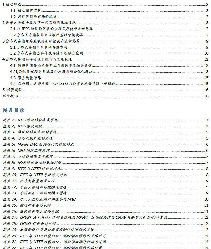 基于分布式存儲的前景:分布式存儲為互聯網基礎構架和商業模式帶來的變革與創新空間,將開辟新的存儲應用市場。分布式存儲采用不同于傳統中心化存儲的資源和市場激勵方式,可以解決中心化互聯網架構下安全性、時效性及成本問題,將帶來互聯網基礎架構變革。另一方面,分布式存儲為個人節點加入市場交換創造了基礎,可以深度挖掘數據內容價值,開辟全新的存儲空間和應用市場。目前的分布式存儲仍面臨I/O性能問題、數據價值分層、應用服務質量等技術瓶頸,在實際應用中需要引入中心化組織進行彌補。
