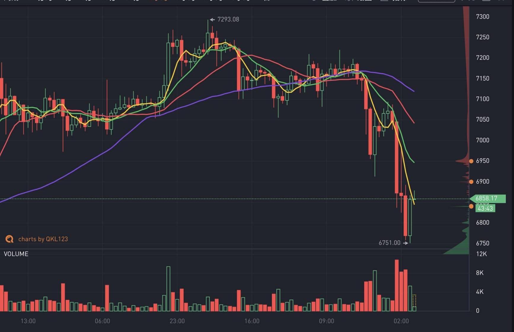 油價毫無底線的暴跌,導致原本不相關的加密貨幣市場也被傳染成了暴跌行情,根據qkl123.com的數據顯示,在油價跌穿屏幕之后,比特幣價格從7050美元迅速暴跌至最低6751美元,截至發稿時,比特幣價格已回升至6858美元附近。