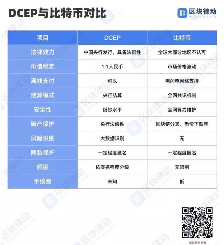 區塊律動BlockBeats認為,屬性的不同決定了DCEP和比特幣在幣值、發行、結算、隱私保護等方面的差異。DCEP由中國央行發行結算,具備穩定性和法償性,而比特幣不由任何央行或機構發行,由算法按特定挖礦規則產生,全球大部分地區也不認可比特幣,不得隨意使用比特幣兌換外匯,且價格波動劇烈。