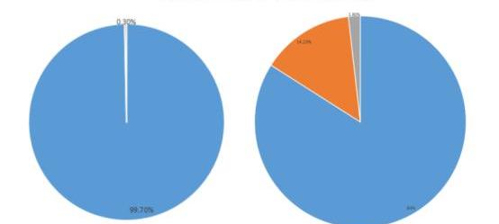 左圖為近一月內通過透明交易與隱私交易的Zcash在網絡內的占比情況;右圖為近一個月網絡內透明交易與隱私交易的占比情況