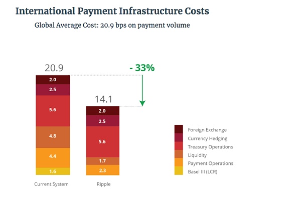 中心化的 SWIFT 協議實際上并沒有收付款業務,它只是發送支付指令,然后通過一個中介系統來處理實際的貨幣。每一個中介都會給交易增加額外的成本,并存在一個潛在的風險。此外,60% 的 B2B 支付需要人工干預,每次大概花費 15-20 分鐘的時間成本。