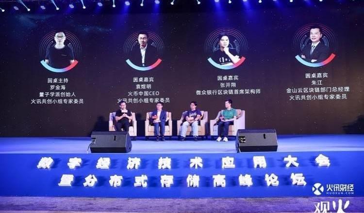 本次觀火大會的開場重磅環節是圓桌論壇《巨頭的進擊》,圓桌主持人為量子學派創始人羅金海,圓桌嘉賓為微眾銀行區塊鏈首席架構師張開翔,金山云區塊鏈部門總經理朱江以及火幣中國CEO袁煜明。