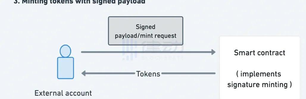 3、出版商隨后授予特定錢包的簽名,以鑄造具有其合同中指定屬性的代幣。基于簽名的鑄造最終允許管理員錢包生成簽名,使其他用戶就可以在該智能合約上鑄造token。