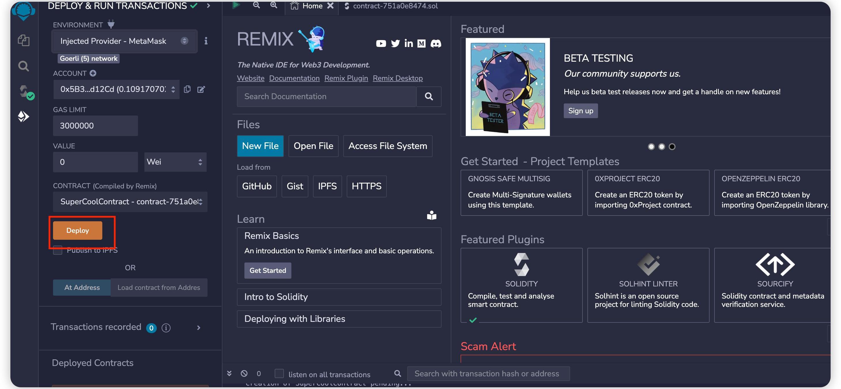 點擊“deploy”,鏈接小狐貍錢包,完成合約部署。