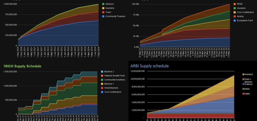 代幣的初始分配和總分配只是其中一部分數據,而代幣的解鎖計劃,則有助于了解代幣的相對分發速率以及它們來自哪里。