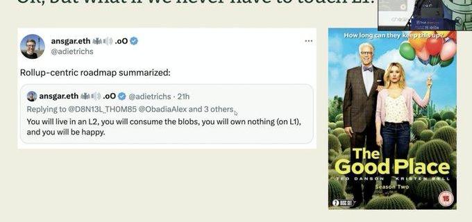Gnosis的創始人@koeppelmann昨天在EthDenver做了個分享,講了L2的局限性,以及另一種擴容的方法。