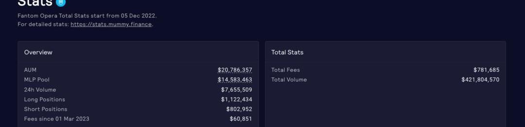 截至目前,Mummyfinance的平臺交易量已超過4億美金,MLP已有近1500萬美金的TVL,產生了約78萬美金的費用,數據并不亮眼。