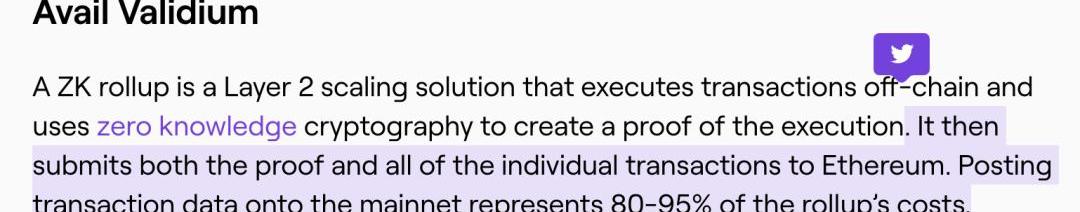 究其根本,我們會發現Layer2交易的單位成本中最大的一塊費用是CallData。在L1上發布CallData的成本很高。根據polygon的文章表明,目前CallData的成本占L2交易費用的80%-95%。如果能夠減少CallData帶來的成本,那么Layer2的gasfee將會驟降。