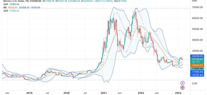 BLUR:Paradigm投資的NFT交易平臺,是龍頭Opensea的有力競爭對手。總量為30億個,近期空投3.6億個。BLUR真實用戶約10000個,協議年化收入約0.3億美元。DUSK:ZK板塊受zksycn將要發幣催化。DUSK是開源的隱私鏈,第一個引入ZK技術,早期與幣安關系親近。已發幣的ZK項目還有MATIC、MINA、IMX、LRC、SYS、METIS、MUTE等。BGB:Bitget交易所的平臺幣近期創歷史新高,市值進入前100。BGB主要盈利業務是合約,合約排名全球前五。現貨的上新幣業務最近幾個月搞得很有聲勢,未來還有可能開通自己的公鏈。BGB和OKB比較類似,短期爆發力一般,但屬于長期慢牛型品種。3、BTC行情