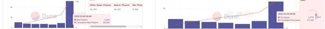 熱度最高的當屬TheBeacon,TheBeacon是一款融合了Roughlite元素的奇幻動作類游戲。玩家可以免費或付費獲得角色,然后進入地下城冒險或者進入酒館答題,兩類行為都可以掉落物品。付費獲得的角色冒險后獲得的掉落物品可以售出獲利。這個游戲作為像素風格的小游戲,運行在Arbitrum上,上線一周時間就吸引超萬人在線游玩。相信也給許多Web3從業者一個啟示,Gamefi一定是3A級大作嗎,不見得。