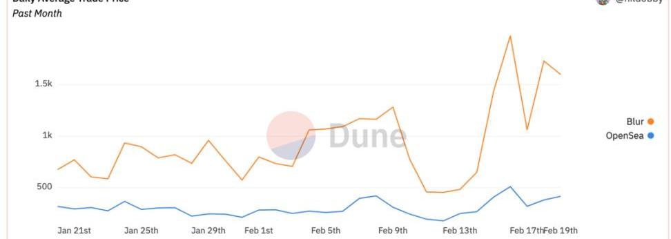 此外,Opensea的成交均價遠低于Blur,推測可能有一部分便宜的NFT存在很大的交易頻次,但是由于價格,交易者對版稅不那么敏感,更傾向于用習慣的平臺交流。