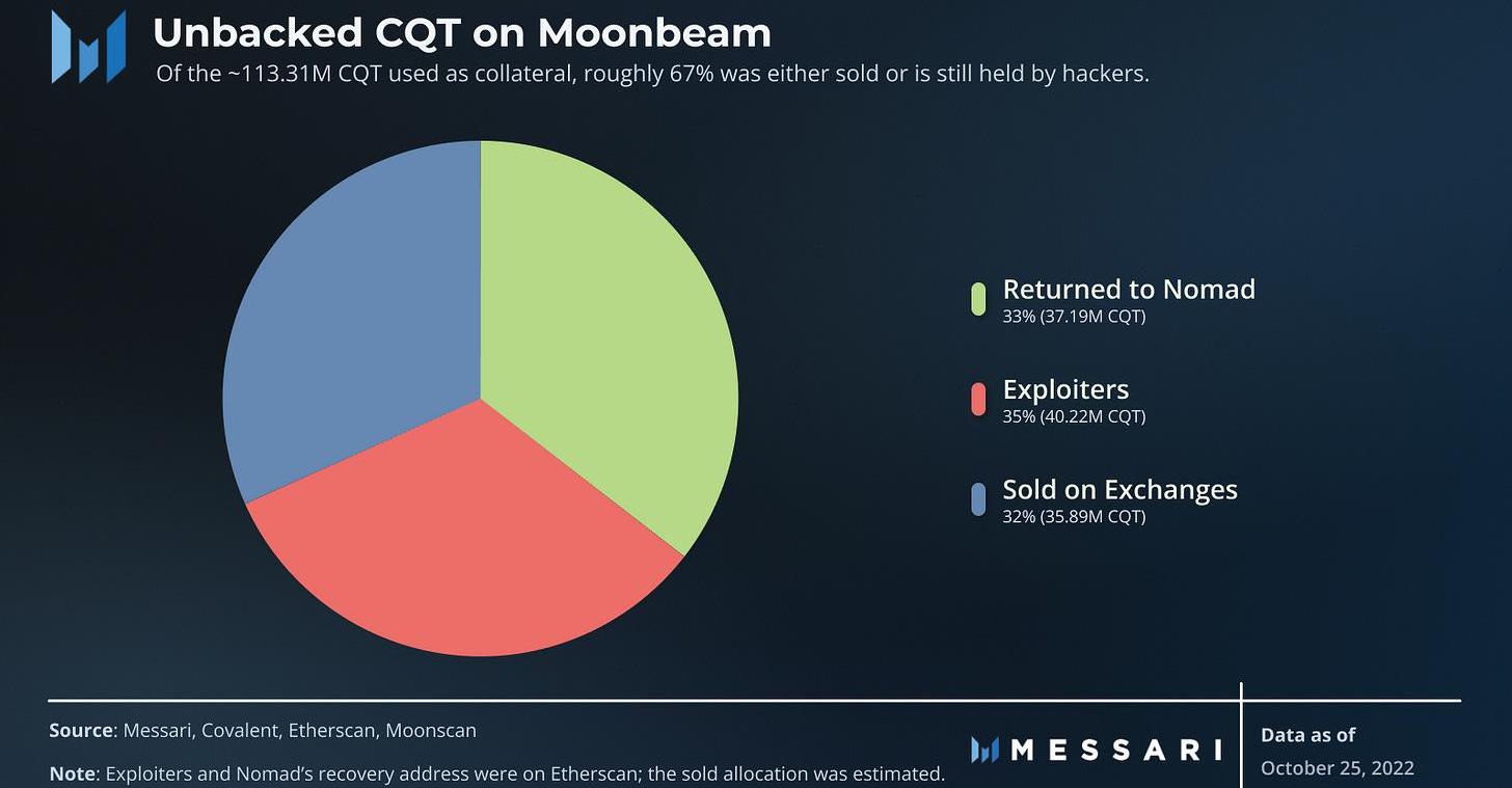 這次黑客攻擊影響了網絡運營商和任何將CQT橋接到Moonbeam的人。鑒于Covalent與Nomad的合作關系,Moonbeam上的所有CQT都變得沒有支持,因為所有ERC-20CQT抵押品都在Nomad的橋智能合約中。Covalent向Messari解釋說,雖然Nomad的橋仍然關閉,但區塊樣本生產者會繼續經營網絡節點。