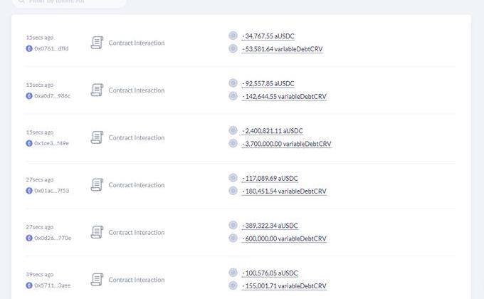 現在他總共借出了3700萬CRV,CRV目前流通總量為6.36億,他這段時間賣空了CRV6%的流通量。