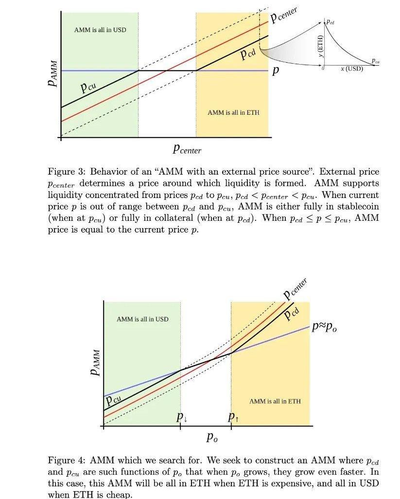 b、流動性區間就是上圖白色部分的區間,再此區間內,以太和u在隨以太價格變化而不斷被買賣。3c、質押的以太和生成的穩定幣自動組成LP,存入專屬的amm池內,產生交易手續費分配沒看到白皮書的介紹4、穩定幣價格調控是保證穩定幣穩定的重要方法,curve穩定幣采用的是類似fraxamo的方法。