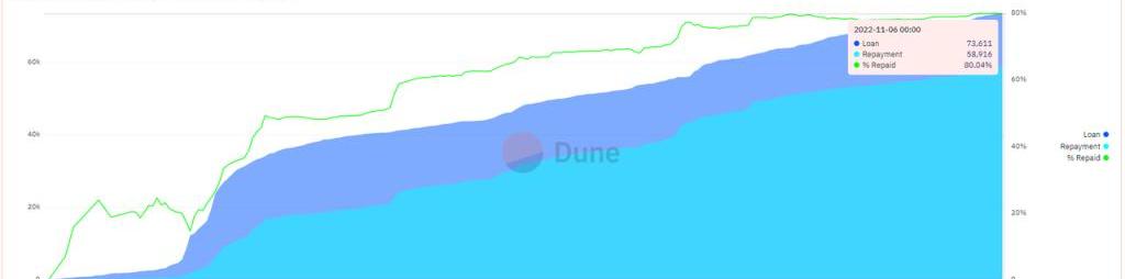 截至2022年11月6日,BendDao累計貸款額達到73,611ETH,當前貸款金額為14,696ETH。還款比例較健康,當前為80.04%。從每日借貸情況來看,2022年4月借貸量激增明顯,當時NFT市場仍舊火熱,YugaLabs“非官方”路線圖透露出給無聊猿持有人空投土地,當時較多BAYC、MAYC及藍籌NFT持有人通過BendDAO抵押借貸出ETH購買更多藍籌NFT,以等待空投土地。當時的BendDAO更多地被利用作NFT玩家的杠桿工具,在領取完土地空投后,貸款人歸還貸款后賣出NFT和土地完成操作。