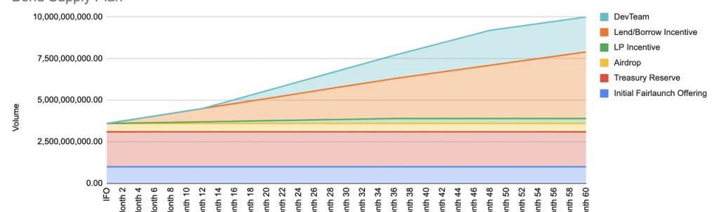 $BEND代幣當前的主要釋放渠道為貸款者、存款者、UniswapV2上流動性提供者分發$BEND代幣獎勵。預計2023年3月起,開發者團隊代幣開始按照3年線性解鎖,屆時也會是代幣的主要釋放渠道。按照當前BEND釋放速度預計,開發者團隊每月代幣釋放量占屆時流通盤的3%左右。