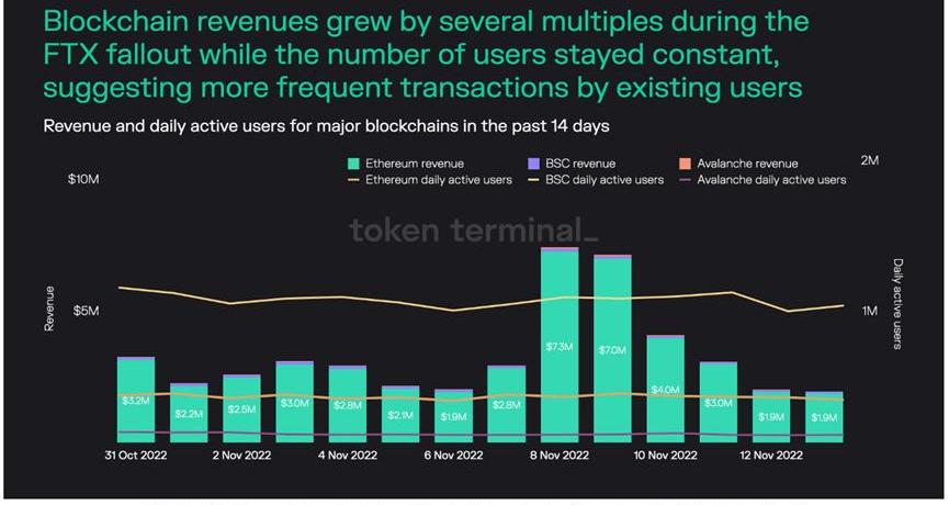 區塊鏈收益和日活躍用戶。來源:TokenTerminal