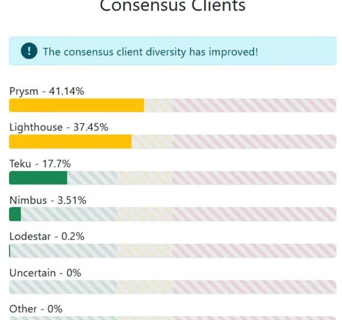 根據clientdiversity.org,Prysm是僅次于Lighthouse的最大客戶。