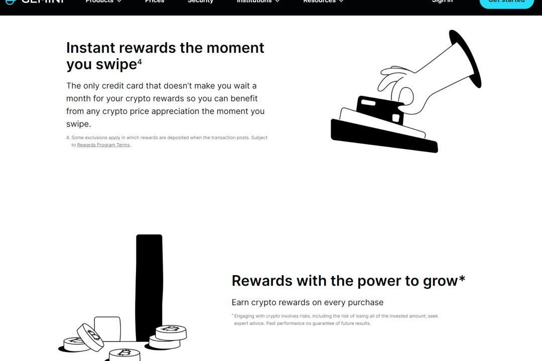 案例:Gemini信用卡支持加密幣返現,其他功能和普通信用卡相同