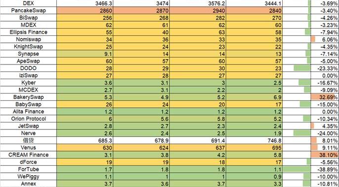 當前整體TVL總量已跌破6月中旬時的最低點,短期仍有繼續向下空間,本周下跌幅度7.8%。