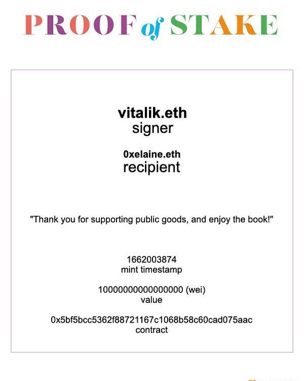 期待以太坊2.0Merge之后走向POS的新發展,同時也歡迎大家關注和支持V神新書《ProofofStake》數字版和實物版將出版,記錄了他10年讀者可在Gitcoin為其捐贈并獲得數字副本和紀念NFT,全部收益將用于公益事業,并且可以生成一個不可轉讓的SBT。