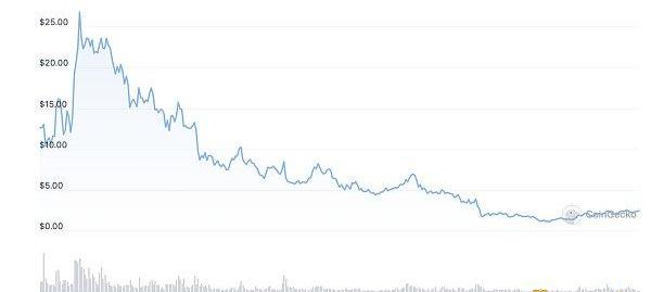 在擁有自己的鏈之后,也能夠為dydx代幣更多的賦能,不論是作為主網Gas,還是將其更好的融入產品,還是治理方面,都能為dydx代幣持有者帶來更大的權益。而目前,dydx主網在SterEx上,代幣仍在ETH主網上,協議與代幣分離。在經歷了初期的上漲后,代幣市值一路下跌,這也是dydx團隊及社區面臨的巨大挑戰。